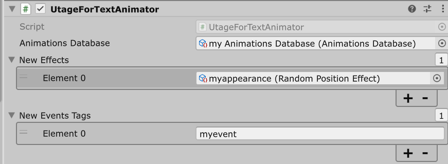 追加したタグに関しての情報は「UtageForTextAnimator」コンポーネントにも設定する必要があるので、バージョンに合わせて下記の設定を行ってください。