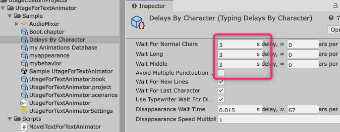 これは、TextAnimatorが自動的に行う文字送りの速度(1文字あたりの表示秒数)の設定です。