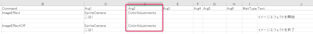| Command | 説明 | Arg1 | Arg2 | Arg3 | Arg4 | Arg5 | Arg6 | WaitType |